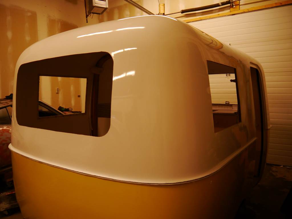 A good friend offered to let me store the Boler in his warehouse for the winter, this provided a warm place for the paint to fully cure. When I arrived at the warehouse I was able to unwrap the trailer and get a close look at the new paint job. I am very pleased, the colors are perfect, the shine is incredible, the Frenched in tail lights look awesome. As soon as the warmer weather comes I can start the reassembly.