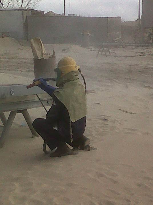 The final few steps in completing the frame include sandblasting to remove the mill scale, this is a smooth finish or coating on new steel, it should be removed by sandblasting or the paint will not stick. A local company offers a DIY area where for an hourly rate they supply all the equipment and space to sandblast your items.