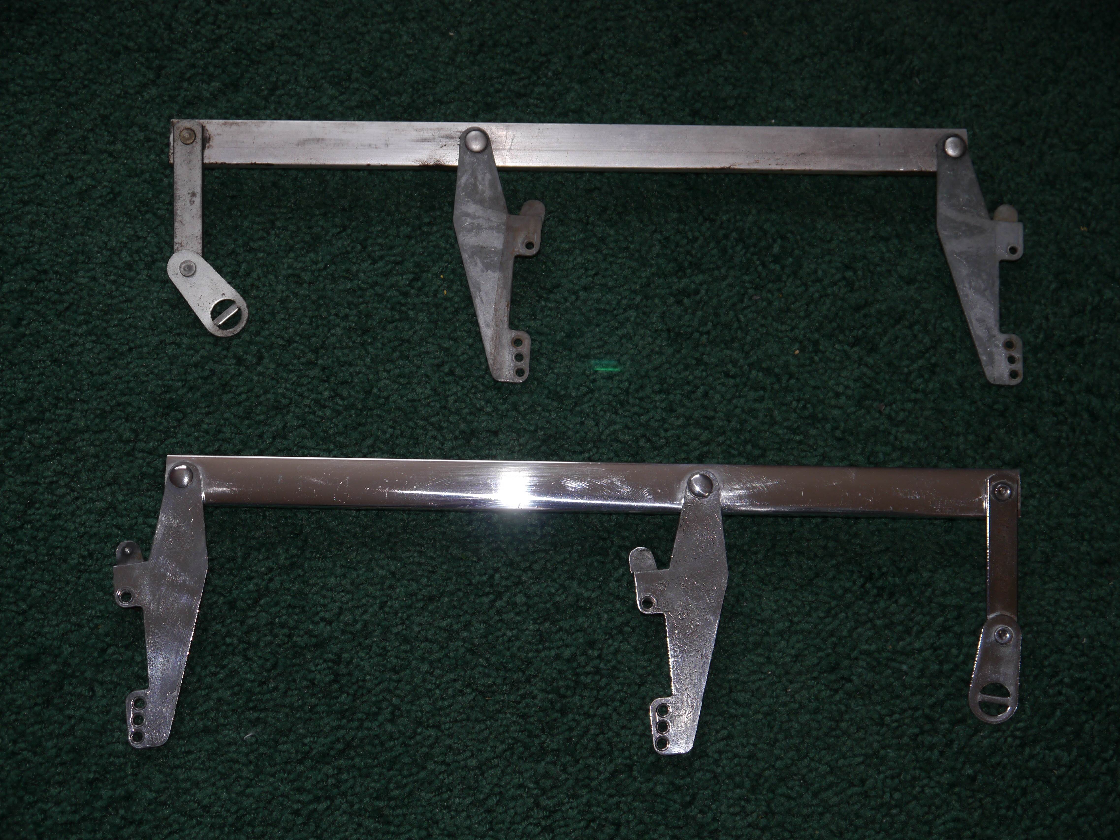 The winters here in Calgary are long and cold, this is a great time to clean-up and prepare all the parts I removed from the Boler so they will be ready for installation when spring arrives. The side Jalousie windows, although in good shape, were a bit stiff in opening and needed new seals and weather-stripping. While looking at the work involved in replacing the seals I noticed at many of the parts taken off the Boler they are made from aluminum, the side windows are made from extruded aluminum and have that dull grey finish, the bellyband is the same, the door hinges are cast aluminum with a dull rough finish, and the new radius door window is all black powder coat on aluminum. In the past I had “played” around with polishing a few scraps of aluminum and was blown away at how great you could make them look is a very short time. With a small polishing setup using an old furnace motor, arbour, and 6” buffing wheel I dove in to see how the grey windows would react to polishing. No surprise the small test area on one of the window frames gleamed … there was no turning back, I had started on a black, messy journey to make the dull bits shiny.