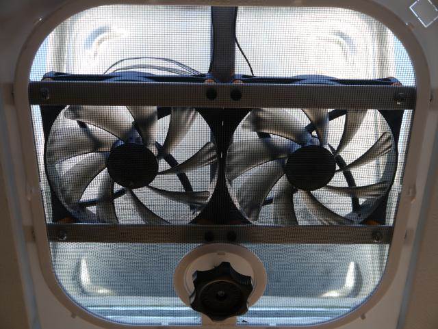 On last weeks trip to Glacier Park we used the fans, the interior temperature and humidity stayed either equal to or lower than the outside air and no window fogging or damp walls. A huge improvement. Even with both fans on high speed they were totally quiet, we could not hear them running even during the night. I would recommend this addition to anyone’s trailer.