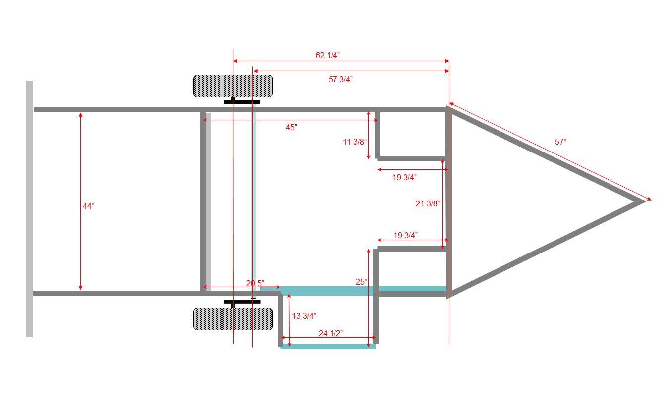 - The final area of concern is the angle of the tongue which concentrates a lot of load and stress right at the point where the right frame rail is notched. There is insufficient area to brace and/or gusset that area to handle the load.