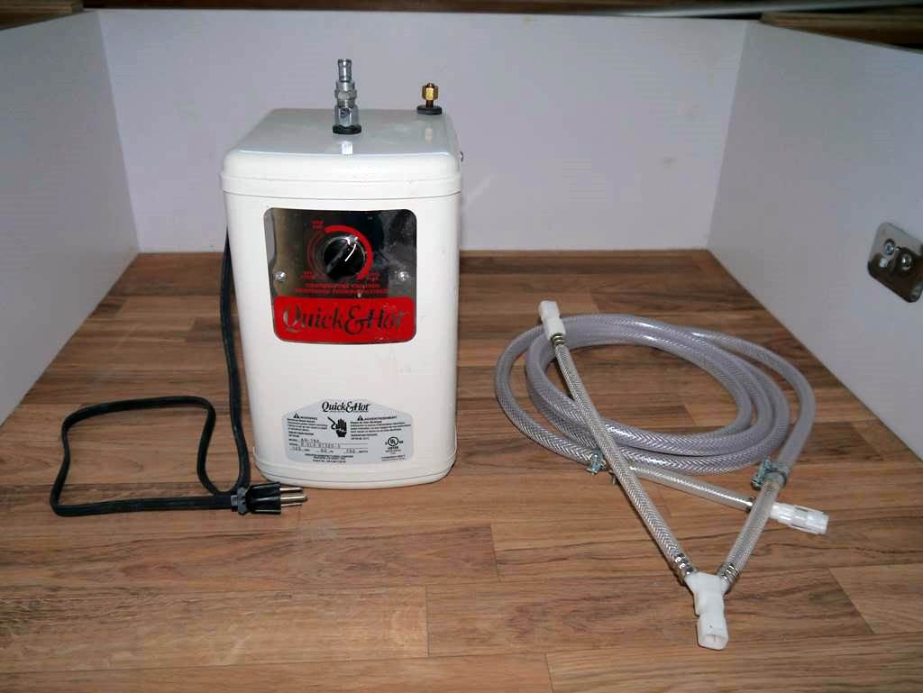 Since I had a 1 gallon “instant hot water” tank sitting in my workshop I thought I might as well add it to the Boler. This is a one gallon electric water heating system, we will only be able to use it when we have shore power, but it is an easy, light and provides that luxury of hot water in many campgrounds.