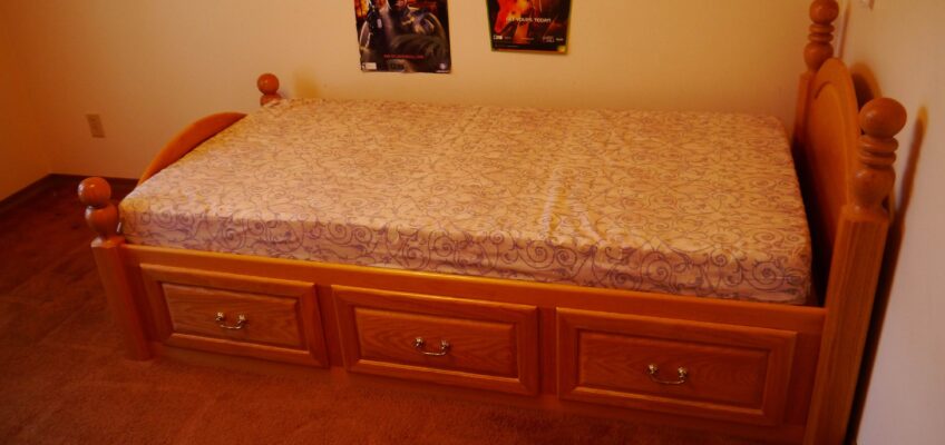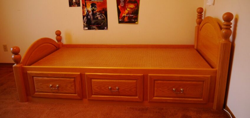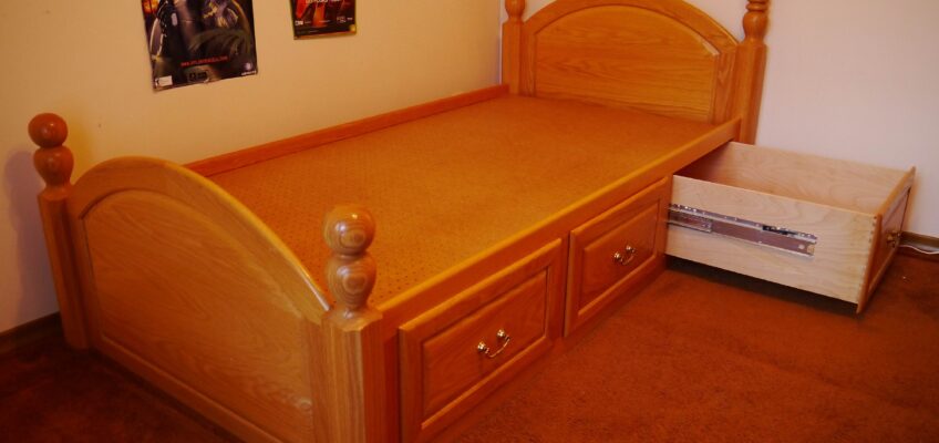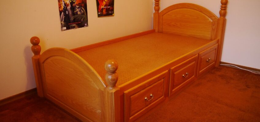 I made this solid Oak 4 poster captains bed for my son as his first “real” bed.