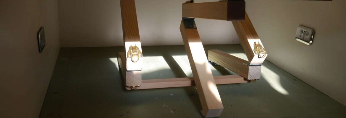 Thinking a folding leg system would be the best solution I designed a prototype of the bi-fold legs that are hinged at the top, middle and bottom. To fold the table you simply fold the back legs in half then the front leg, and voilà it should be that simple. This design worked very good, easy to set-up and put down and also very stable. To lock the legs in the upright position spring latches opposite the hinges are used which essentially lock the legs in the center.
